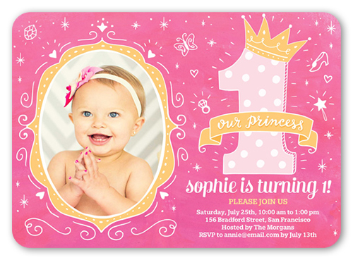 Princess Doodles Baby Girl 1st Birthday Invitation Shutterfly